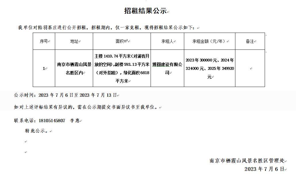 下一篇: 南京市栖霞山风景名胜区管理处陆羽茶庄招租公告