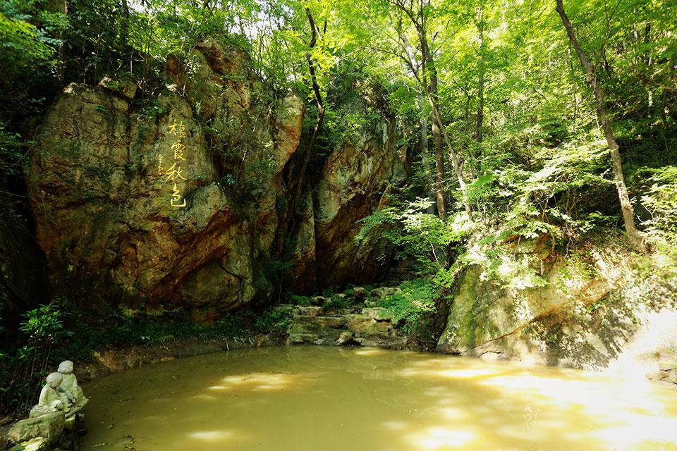 景点特色:千佛岩附近有一潭明镜紧偎于陡立的石壁下,周围有松石环抱,盛暑至此顿感寒泉清澈,凉意逼人,此乃品外泉,又名白云泉