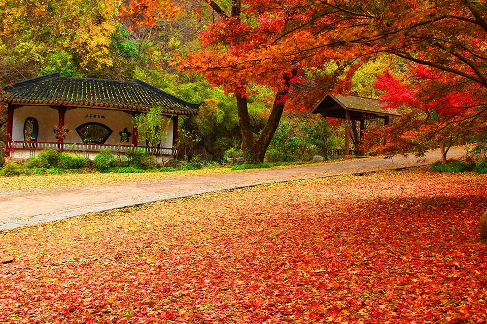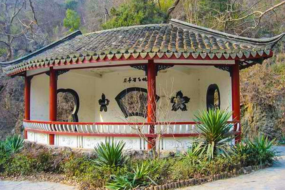 景点特色:依崖傍洞,三面轩敞,步入亭内,花窗桃扇,杂树亭墙,仰望青山,俯视涧水,修篁嘉树,鸟唱泉鸣、人景相并,心旷神怡。