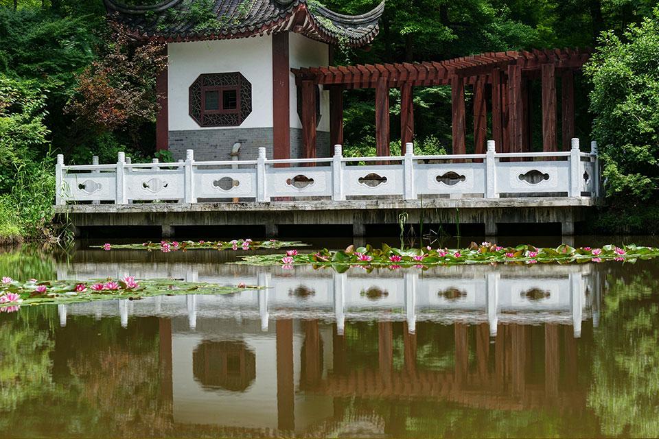 读峰阁位于虎山之巅。碧云亭旁。歇山卷棚式,不设门窗,轩敞洞达。此处视野开阔,凤翔峰、龙山山峦轮廓以及苍翠掩。