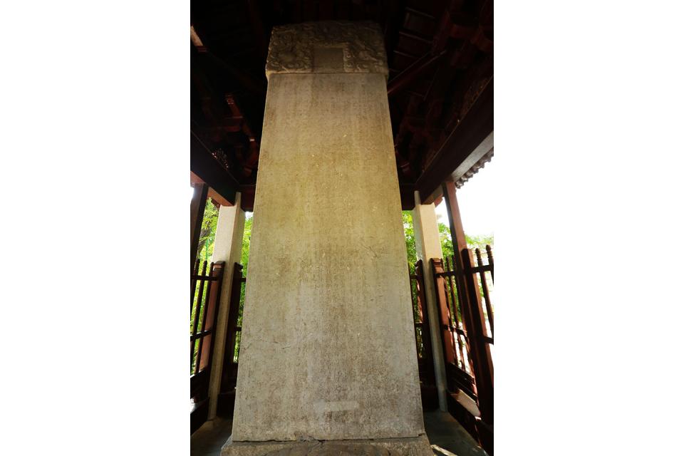 各位游客,您在三圣殿前看到的这两块高大石碑,碑高2.7米,宽0.96米,青石质地,立于明万历丙午年,也就是1606年春。东侧为明代万历十七年,也就是1589年,状元焦竑所著《栖霞寺修造记》,耿定力篆额,黄寉翱书丹,朱时修镌。主要记述嘉靖年间,栖霞寺的修造过程。而与之相对的一块石碑,则是明代万历十七年,进士祝世禄所著《重修栖霞寺记》,曾同亨篆额,黄寉翱书丹,朱时修镌,记述了栖霞寺和三圣殿修造数十年后重修扩建的过程。