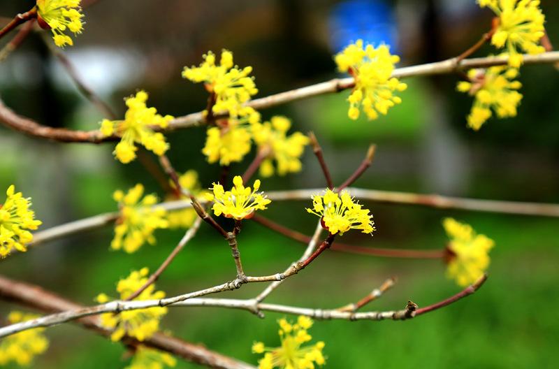 如果有人问你,目前南京最“火”的春花是什么?你一定会毫不犹豫的说是“二月兰或是樱花”。但是如果你到栖霞山,你就会看到另外一种独特的春花景象。那就是片片盛开着的小黄花非常惹眼。植株不高,绿色的叶子尚未萌发,但花朵已竞相开放,黄黄的小碎花,从远处看,一片满树金黄,走近一看,花朵比较奇特,一簇簇黄色的小花挂在枝头,伞形的花絮在风中轻轻摇曳,给初春的栖霞山增添了花团锦簇、生机盎然的美景。记者从栖霞山景区了解到,这种开着黄色小碎花的植物叫“山茱萸”,在南京地区分布不多,栖霞山也是在前几年从外地引进过来的,目前正处于它的盛花期,由于气候的影响,今年的花期有所推迟。山茱萸在栖霞山主要分布在霜红苑、枫林湖、太虚亭等景点,有500株左右,是一种“先花后叶”的植物,也就是说,在春天,该植物先开花后长叶子,就和白玉兰一样。据悉,它是一味重要的中草药,其食用和药用已经有1500多年历史了,它气味辛辣芳香,性温热,有补益肝肾,收敛固涩之功效,可以治寒驱毒、腰漆酸痛,眩晕耳鸣,其果实在秋天成熟,色红艳,如玛瑙,状如枸杞,古有取茱萸缝袋盛之、佩身祛邪辟恶之说。山茱萸是我们平时非常熟悉的“六味地黄丸”的重要成分之一,具有很高的营养价值和药用价值。但游客只可以近距离的观赏,岂不可随意采摘,更不能随意食用。