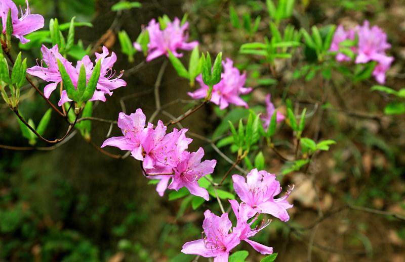 你看过野生的杜鹃花吗?它就是山踯躅,现在基本上看不到,非常稀少。据介绍,这种野生的山踯躅在栖霞山就有,目前主要分布在景区中峰涧乾隆行宫区域的山坡上,后来又在天开岩区域发现了一些。只见1-2米左右的小灌木,枝条从山坡上倒挂下来,仔细一看发现它的叶片呈卵形,枝叶皆有毛茸,花冠呈漏斗状,边缘五裂而深,雄蕊雌蕊一个,萼片很小,枝条上满满的开着紫红色的花,非常艳丽好看。据悉,它是一味中草药,据《本草纲目》记载:“羊食其叶,踯躅而死,曾有人以其根入酒饮,遂至于毙也”,所以它又叫羊踯躅,它和曼陀罗花就是古代蒙汗药之源。