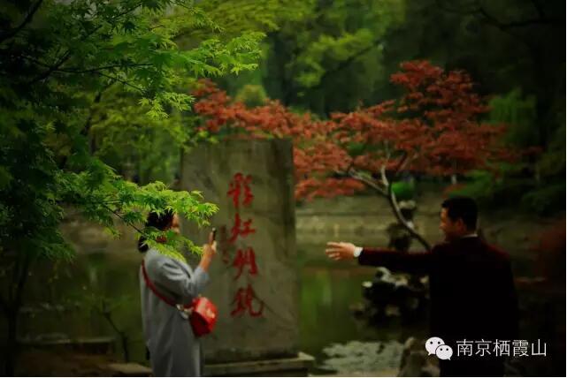 这可不是全部,顺着山道一路走走停停,沿途全是枫林,高低错落、漫山遍野。他们与栖霞山上的古木一起,描绘浅绿、粉绿、中绿、翠绿、深绿一直到墨绿的春之色。
