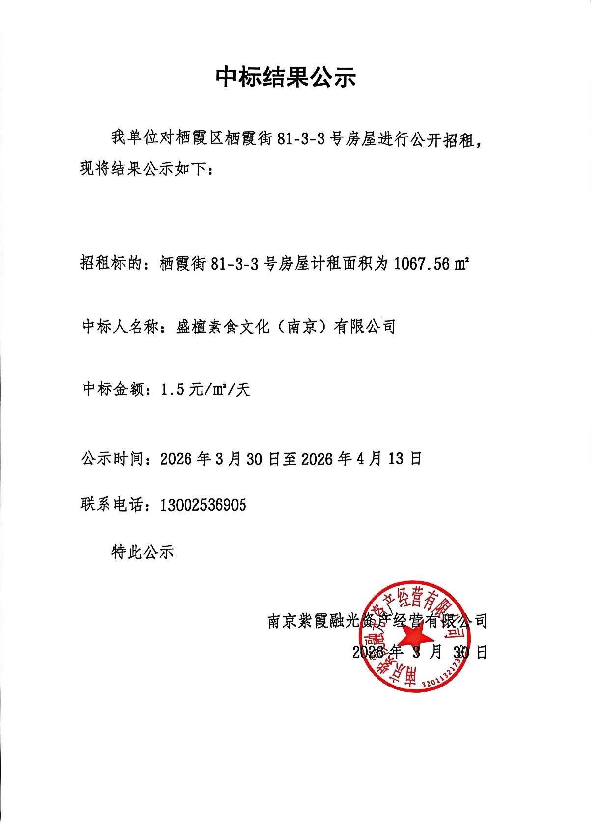 南京市栖霞区栖霞街房屋招租公告81-29-1号