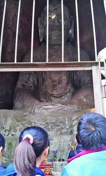 据工作人员回忆,当时看见在无量寿佛的右眼下方出现一条细长的光斑,随着时间的推移,光斑不断变大、变亮,呈不规则变化。整个光斑的移动轨迹并不像去年所看到的,由右眼下部开始经过右眼、右眉,最后完全到达眉心处的水晶球位置折射出五彩光芒,而是直接经过鼻翼、鼻梁,没有到达眉心处。