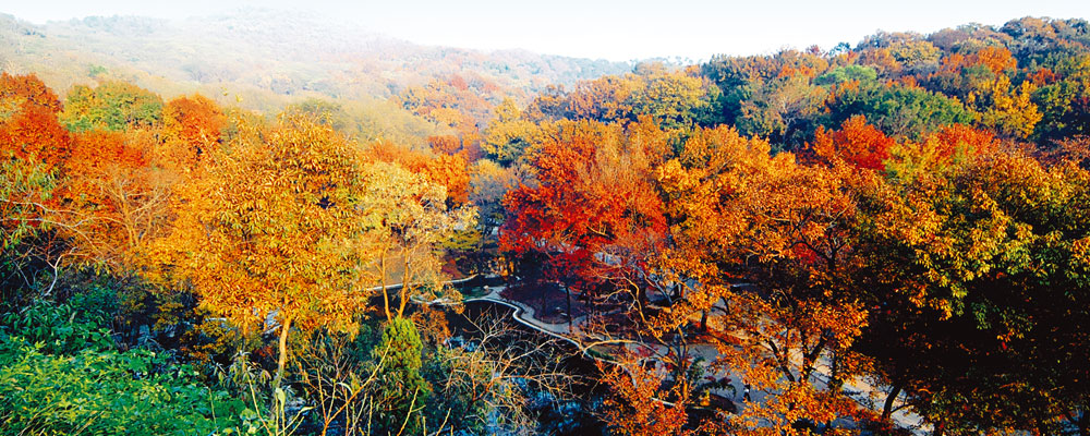 栖霞山公园位于南京市栖霞区,距太平门20公里,西北与北面环绕长江,南有沪宁铁路,东与江南水泥厂毗邻,西临栖霞镇,周长约7.5公里,绿地率99.28%。园内景观有栖霞寺、千佛崖、舍利塔、唐明征君碑、彩虹明镜、霜红苑、珍珠泉、白乳泉、桃花涧、叠浪岩、碧云亭、太虚亭、畅观亭、试茶亭、桃花扇亭、德云亭、湖心亭等。