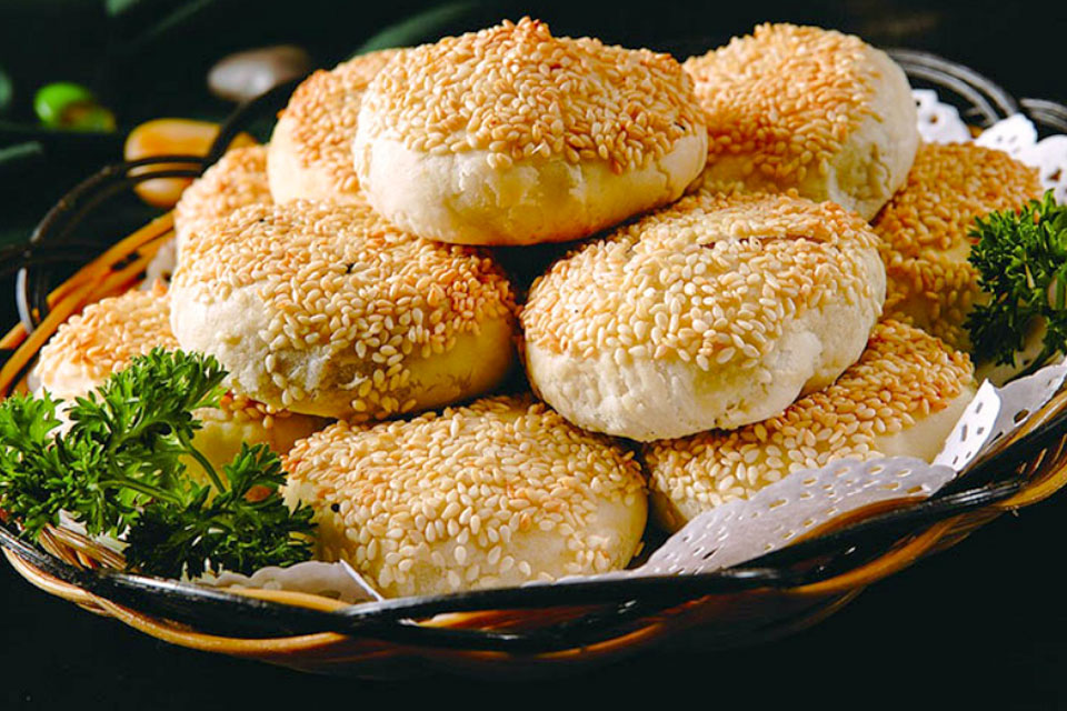 鸭油酥烧饼是南京夫子庙的传统小吃,且这里的烧饼别具特色、非同一般。鸭油酥烧饼是用精选鸭油烧制出来,其选料、火候、制作都十分讲究,上面布满了香香的芝麻,里面层次分明,入口又香又酥,回味无穷。