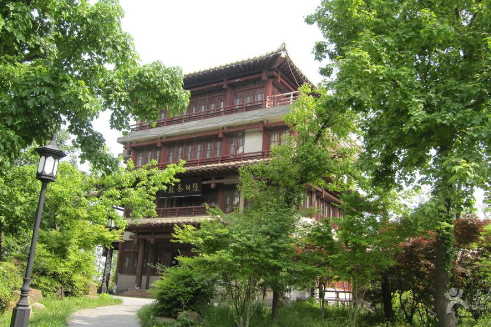 陆羽茶庄位于栖霞山风景区内,位置在栖霞山内,四层楼,为纪念唐代茶圣陆羽在栖霞山品泉试茶而建。茶庄是由楼、亭、廊组成的仿唐建筑群,四层框架结构,布局因地制宜。游人进入茶庄,观景品茗,可感受到与陆羽茶圣品茗对饮之趣。